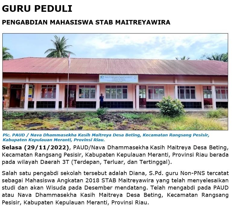 Penghargaan Atas Pengabdian Sebagai Guru Agama Buddha10 August 2019 (6 years ago) Wakil Ketua I Sonika,S.E.,S.Ag.,M.Pd. Wakil Ketua III Rida Jelita, S.H... |