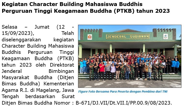 Kegiatan Pembinaan Karakter Mahasiswa Buddhis Dan Mahasiswa Lintas Agama Tahun 202316 October 2023 (2 years ago)
