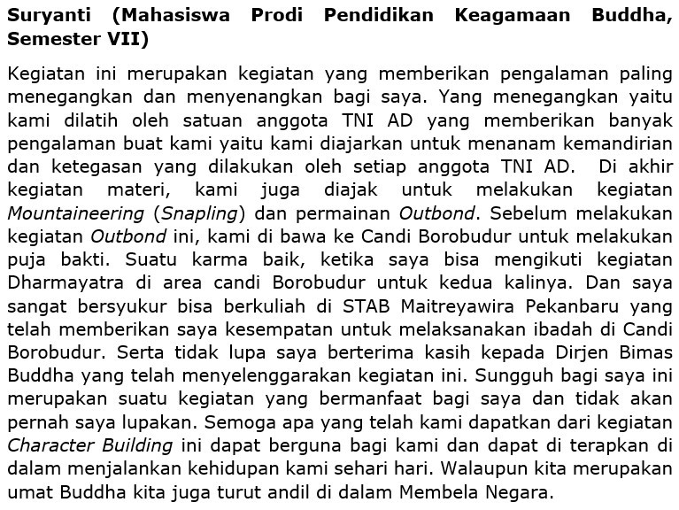 Penghargaan Atas Pengabdian Sebagai Guru Agama Buddha10 August 2019 (6 years ago) Wakil Ketua I Sonika,S.E.,S.Ag.,M.Pd. Wakil Ketua III Rida Jelita, S.H... |