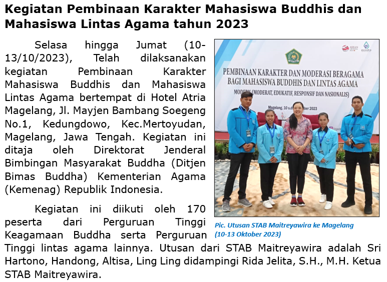 Mahasiswa Stab Maitreyawira Mengikuti Kegiatan Mahanitiloka Dhamma (mld) Nasional 202323 May 2023 (2 years ago)