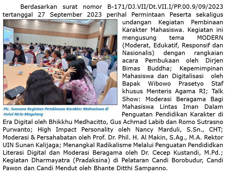 Kegiatan Character Building Mahasiswa Buddhis Perguruan Tinggi Keagamaan Buddha (ptkb) Tahun 202318 September 2023 (2 years ago)