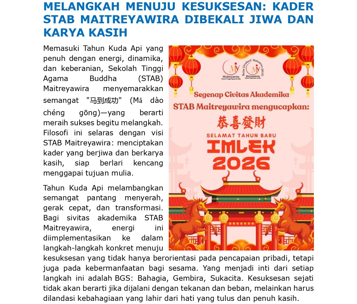 Perayaan Imlek Bersama Stab Maitreyawira Tahun 2024 : Tema Bahagia, Gembira, Dan Sukacita29 February 2024 (2 years ago)